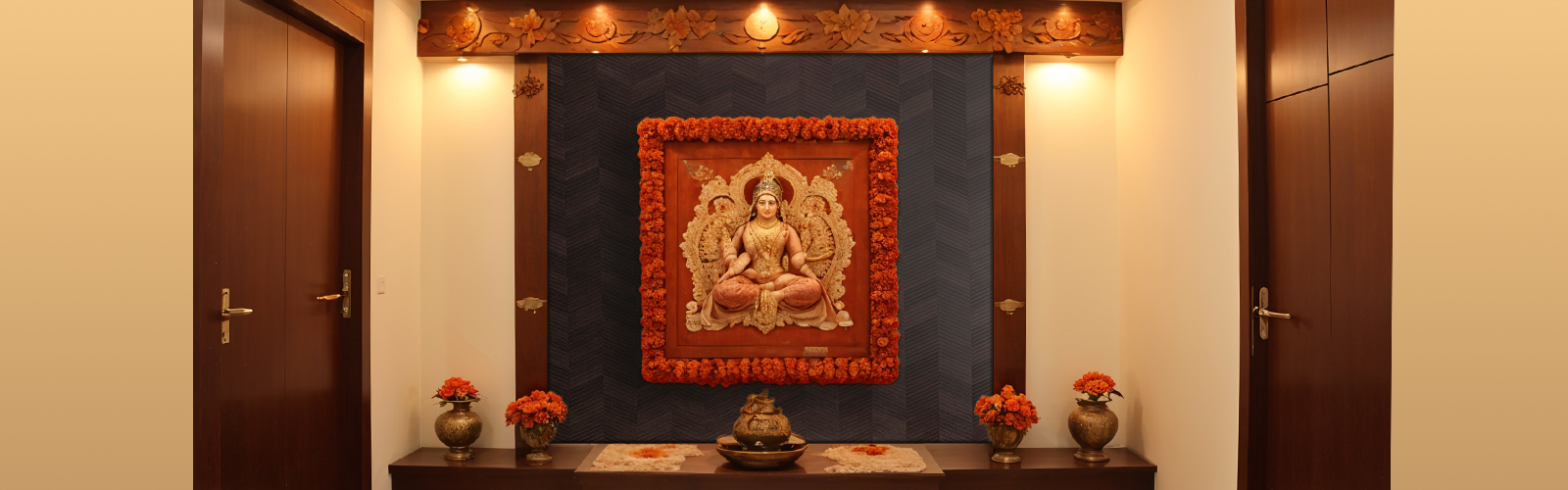 - Storage solutions to keep pooja essentials close
