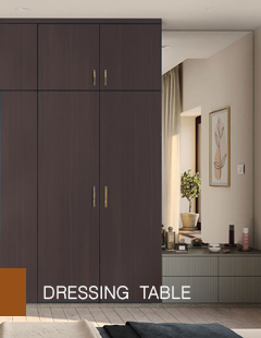- Walk-in Wardrobe & Dressing Table: A walk-in wardrobe styled with Glossy Laminates and a Stone Finish Dressing Table looks stylish, even in 2BHK interior design projects.