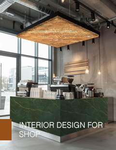 - Shop Interiors: Reflective Glossy Laminates for the counters and natural Stone Designs for the racks improve the overall visual appeal. This is essential for commercial interiors.
