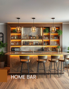 - Home Bar: High-gloss black or burgundy laminate has a sophisticated, polished finish – excellent if you are doing a flat interior design project.