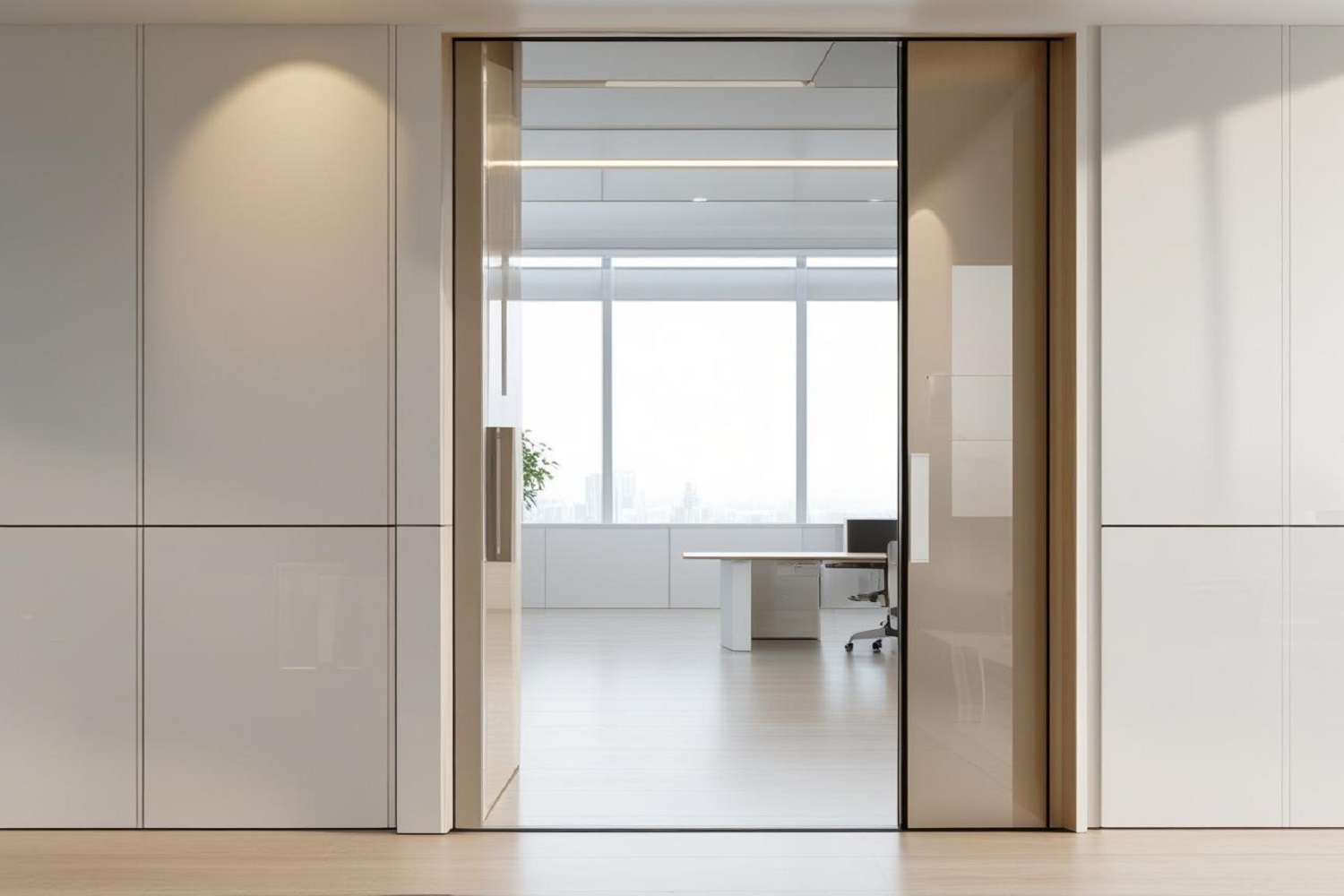 Begin with setting the function of the door, whether it is for the entrance, a room, or a conference hall. Select finishes in the nature of matte greys, solid whites, or natural wood grain to achieve a neat, professional-looking modern office door.