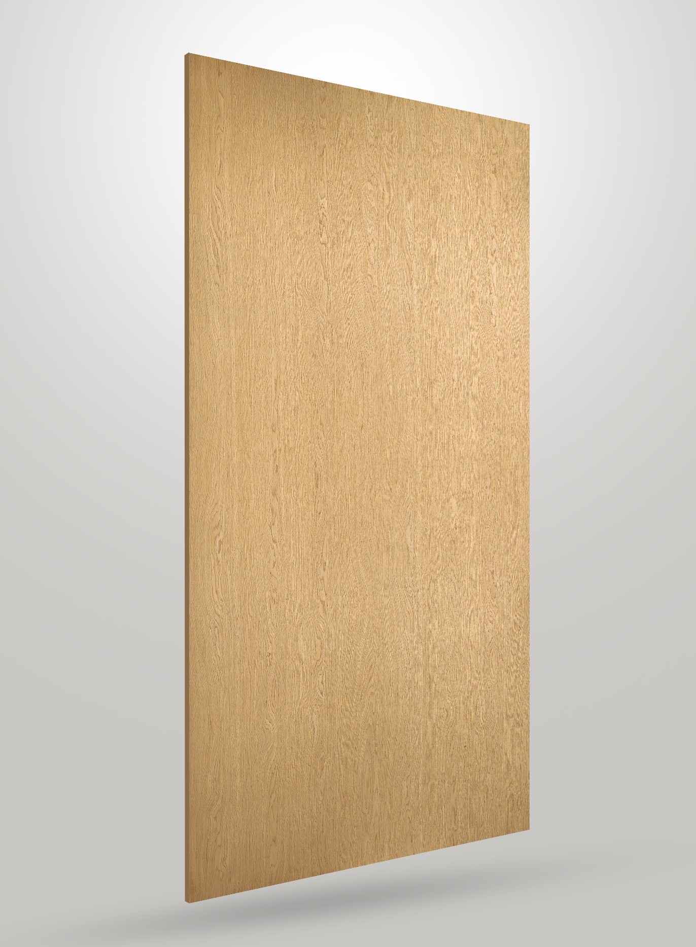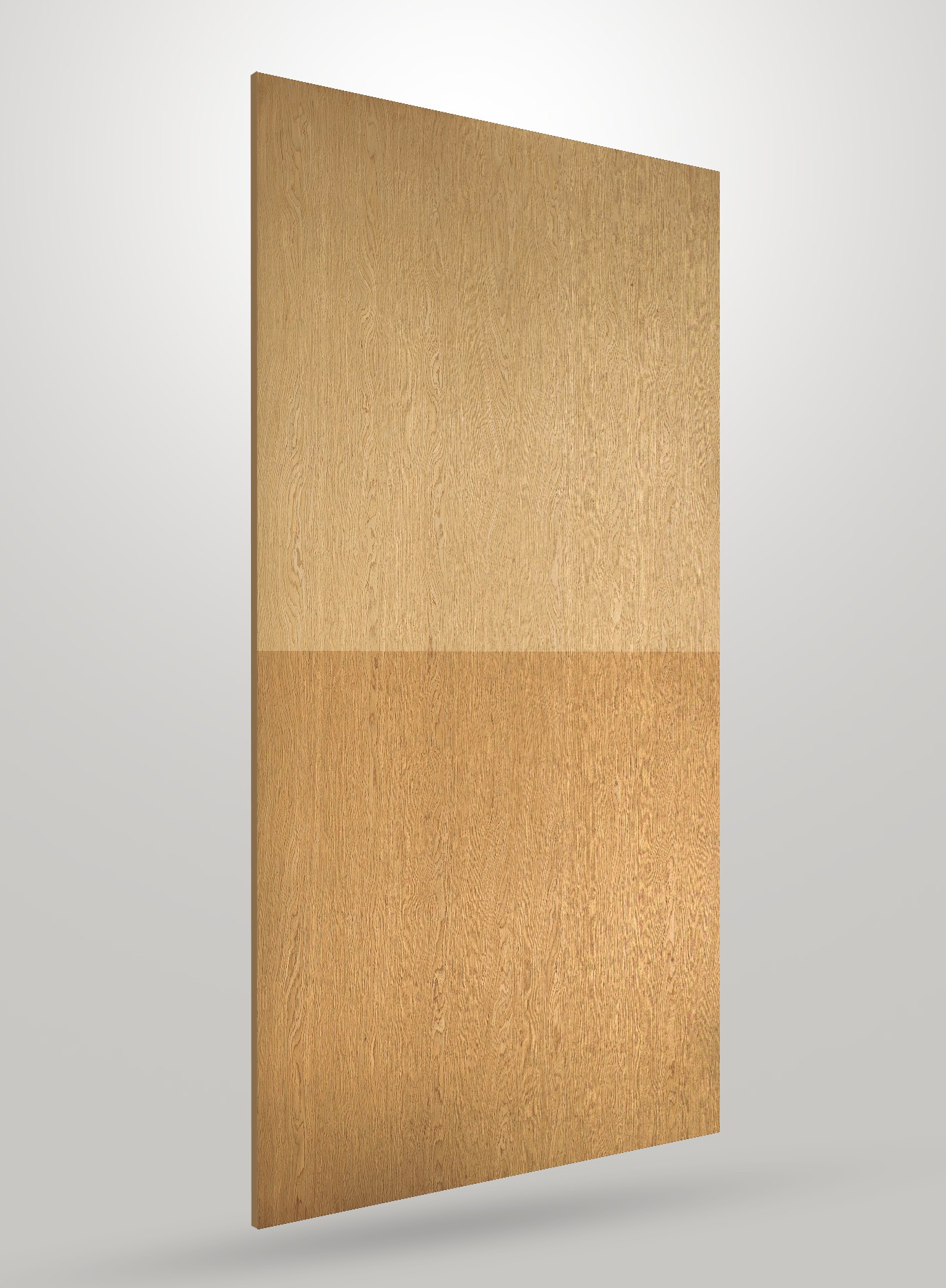 The veneer is sliced using precision European crown-cutting, revealing a rhythmic pattern of soft, rounded crowns that feel classic, noble, and exceptionally balanced. A light mineral pigment — certified to the highest EU environmental norms — highlights the natural gradation without altering the oak’s genetic identity.