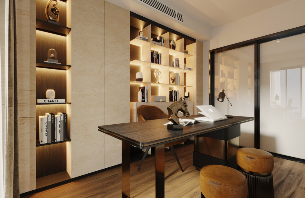 Embrace luxury with our premium laminate, showcasing a velvety matt finish and intricate designer print. The timeless elegance of its stone-inspired design adds a touch of sophistication to kitchens, shops, and offices, creating an upscale atmosphere.