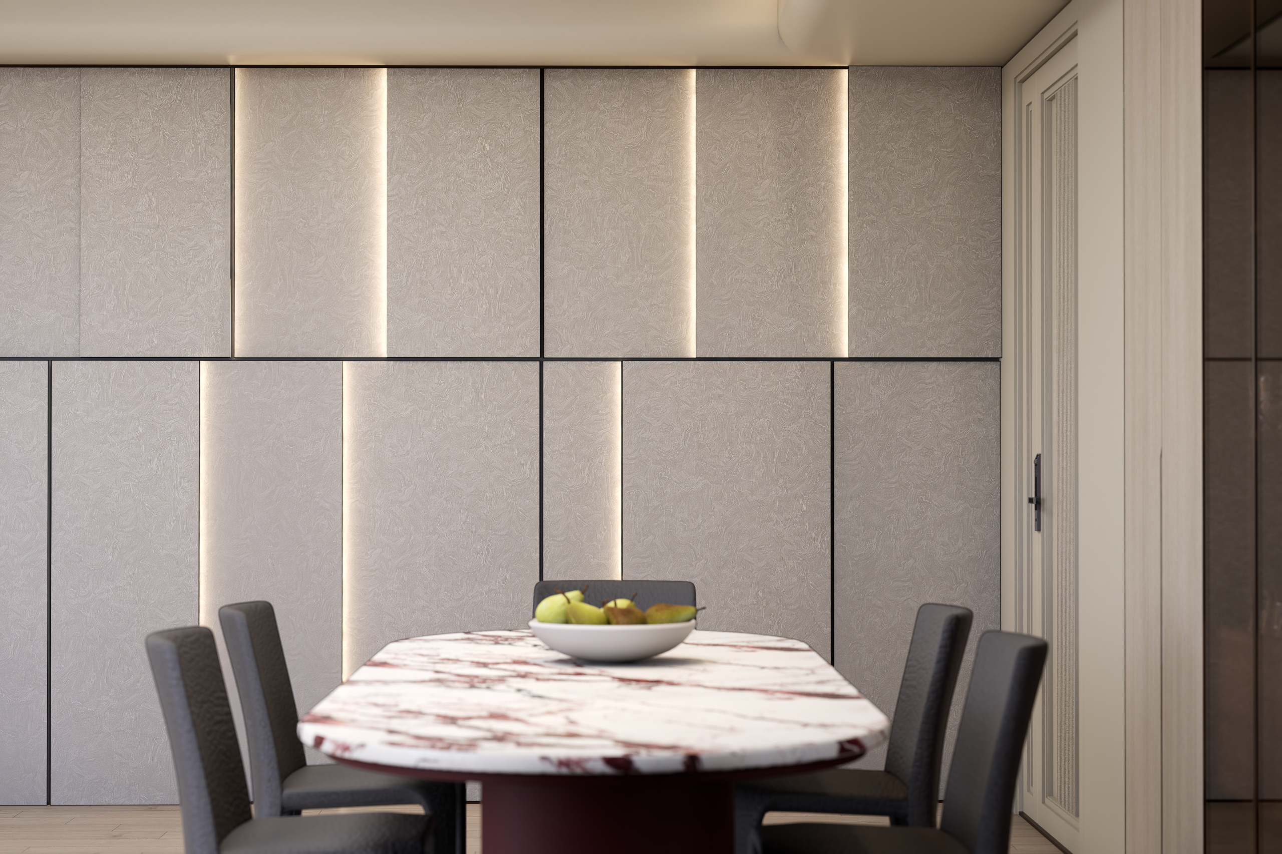 Make a statement with our deluxe laminate, showcasing a velvety matt finish and chic designer print. Its refined stone-inspired motif exudes elegance, making it an ideal choice for kitchens, shops, and offices seeking a touch of sophistication in their decor.